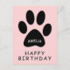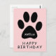 Cute Pink Black Paw Print Happy birthday Postcard