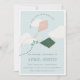 Cute Pink Blue Flying Kite Sky Clouds Birthday Invitation