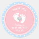Cute baby feet and blue polka dot baby shower/sprinkle sticker labels for your gift favours. Great for gender reveal party. Faux diamond to add that little extra sparkle touch. White, pink and blue colour scheme. Keep wording Thank You or add your text.