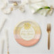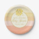 Cute custom sunshine baby shower paper plates. The design features a hand-painted illustration of a smiling sun wearing a floral crown and a boho watercolor rainbow striped background with shades of pink and yellow. The text can be customised to suit your needs (click "Personalise" to edit and "Customise further" to make more advanced changes). The perfect paper plates for a sunny, summer baby shower. Matching sunshine invitations, baby shower decorations, and new baby gifts can be found in store.