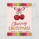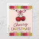 Send a little cheer with a sweet twist! This festive postcard features two bright red cherries tied with a pink ribbon, paired with the playful greeting “Cherry Christmas!” in bold, colourful lettering. With its light pink background and striped borders, it’s a cheerful way to share holiday wishes that feel fresh and fun.