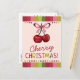 Cute Pink Bow and Red Cherry Christmas Holiday Postcard