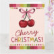 Send a little cheer with a sweet twist! This festive postcard features two bright red cherries tied with a pink ribbon, paired with the playful greeting “Cherry Christmas!” in bold, colourful lettering. With its light pink background and striped borders, it’s a cheerful way to share holiday wishes that feel fresh and fun.
