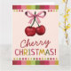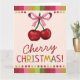 Cute Pink Bow and Sweet Red Cherry Christmas Card
