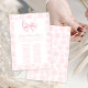 Discover our charming and elegant coquette-style baby girl shower baby name race game cards. Each card features the entire alphabet for filling in names, adorned with a cute pink bow, surrounded by a pink floral pattern. Perfect for adding a playful touch to your baby shower festivities, these game cards blend whimsical design with sophisticated charm.