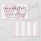 A sweet "books for baby" enclosure card to add with your baby shower invitations. Each guest brings book for baby to the shower instead of a card. The book can be new or gently used, making a nice start to the building of a little library for baby. This feminine design has a cute pink bow tilted to one side with a simple pink and white awning stripe background on the reverse side.