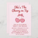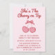 Cute Pink Bow Cherry on Top First Birthday Invitation