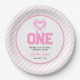 Cute Pink Bow Coquette 1st Birthday Paper Plate