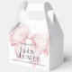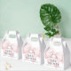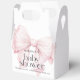 Cute favour boxes to thank your shower guests featuring a large pink coquette bow angled to the side on the front and back of the favour box. Stylish type face pairings include a modern display font and elegant serif. This item is a great choice for the mother-to-be who is expecting a baby girl. Personalise the easy to use text template with the guest of honour's name. Available in several sizes, shown here in the largest size available which is Gable 5x3 inches x 6.5 inches.