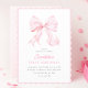 Baby Pink Bow First Birthday Invitation for baby girls with scallopped edges.