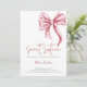 Minimalist and elegant pink bow sweet sixteen photo birthday invitation. With a beautiful pink bow and handwritten typography, this invitation will be the delight for birthday girl. Illustrated and designed by Patricia Alvarez.