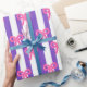 Cute Pink Bow Purple Stripe Pattern Girly Wrapping Paper