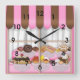 Cute Pink Brown Cupcake Sweet Bakery Square Wall Clock