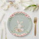 Cute Pink Bunny 1 One First Green Birthday Paper Plate
