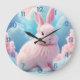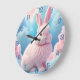 Cute Pink Bunny Cotton Candy Clouds Large Clock