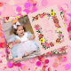 Sent this cute thank you card to your guest featuring cute little bunny rabbit with daisy floral flowers with little rabbits hopping around illustration for your daughters first Birthday Party, one year old. The backside has a pink allover floral pattern. Original artwork by Caroline Bonne Müller.