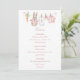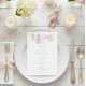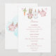 The menu features a sweet watercolor clothesline strung across the top proudly displaying tiny, adorable items, each featuring a cute bunny dressed in pink in a soft watercolor style. The back features the clothesline motif and a soft cloud. Easily add your own details and change the font style, size color and placement if you would like to. This menu is a beautiful detail, inviting your guests to share in the "hoppy" anticipation of your baby girl's arrival!