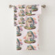 Patterned towel set with an adorable image with a round shaped bunny standing outside it's egg-shaped house. Pastel colours and cherry trees give it a Japanese kawaii vibe.