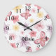 Cute Pink Butterfly Monogram Large Clock