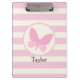 Cute Pink Butterfly on Retro Stripes Clipboard