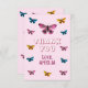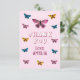 Cute Pink Butterfly Pattern Birthday Thank You Card. Thank your birthday guest with this butterfly-themed birthday cards perfect for a girl's birthday party! Featuring colourful butterflies this design add a magical touch to any celebration. Customise it with your child’s name and thank you note on the backside and make their day unforgettable!