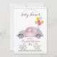 Cute Pink Car,Balloons Zigzag Baby Shower Invitation
