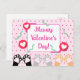 Cute Pink Cat Paws Up Happy Valentines Day Holiday Postcard