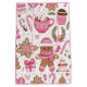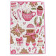 Designed with an adorable holiday pattern featuring a cozy gingerbread character, candy canes, festive mugs, Christmas trees, and winter treats in soft pink tones.
