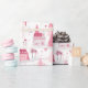 Cute Pink Christmas Village Snowy Day Wrapping Paper