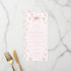 Discover the charm of our preppy shabby chic baby girl shower menu cards, showcasing cute pink bows and pink rose flowers. These beautifully crafted cards are perfect for adding a touch of style to your sweet baby girl celebration, creating a refined and elegant atmosphere that complements any girly vintage-inspired theme.
