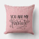 Add a touch of romance to your home with this beautiful “You Are My Favorite” throw pillow featuring elegant hand-lettered typography with heart accents on a soft pink sparkle background.