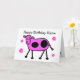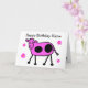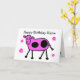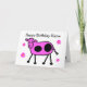 Cute Pink Cow and Flowers Cartoon Birthday Card