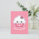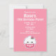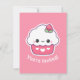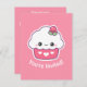 Super cute pink cupcake with smiley face and happy strawberry friend. Add your party details to the back.