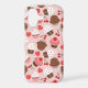 Lovely pink, brown, red and white pattern of cute cupcakes, cherries and hearts.