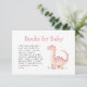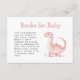 This cute baby shower enclosure card features a pink watercolor dinosaur below the words "Books for Baby" in pink hand printed font. The editable message is in charcoal grey sans serif.