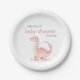 Cute Pink Dinosaur Girls Baby Shower Paper Plate