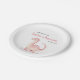 These cute baby shower paper plates feature a pink watercolor dinosaur below the words "baby shower" in pink hand printing. Personalise the text with the name of the mum-to-be and date in charcoal grey sans serif font.