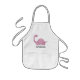 This girls' apron features a cute illustration of a pink dinosaur with long eyelashes. Personalize it with your child's name in black letters.