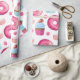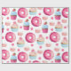 Cute Pink Doughnuts and Cupcakes on White Wrapping Paper