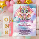 This enchanting pink baby dragon 1st birthday party invitation is a whimsical and delightful way to celebrate your daughter’s birthday. This invitation showcases a darling baby dragon sitting joyfully amidst fluffy clouds against a vibrant rainbow. With customisable sections, the invitation allows you to personalise the details of your event effortlessly.
