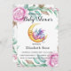 You will love this cute baby dragon sleeping on the moon and pink peonies and sage green foliage. Great for a baby shower!