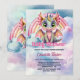 This enchanting pink baby dragon baby shower invitation is a whimsical and delightful way to celebrate the impending arrival of your little one. This invitation showcases a darling baby dragon sitting joyfully amidst fluffy clouds against a vibrant rainbow. With customisable sections, the invitation allows you to effortlessly personalise the details of your baby shower.
