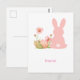Cute Pink Easter Bunny with Spring Flowers Postcard
