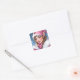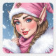 Adorable Christmas stickers with a female elf in a pink furry hat and outfit. Snowflakes are falling in the background. Add a festive touch to Christmas card envelopes with these cute seals.