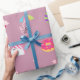 cute pink emoji unicorns candies flowers lollipops wrapping paper