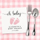 Cute paper napkins for your baby girl shower with "oh baby" in a pretty script with swashes and a pastel pink watercolor of baby feet. Underneath you can easily personalise with your name and shower date.