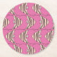 Colourful pink fish pattern paper coaster. Artwork from artists own illustrations.