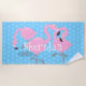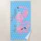 Cute pink flamingo trio blue cartoon illustration beach towel