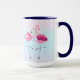 Cute Pink Flamingos On Stylised Beach Water Waves Mug