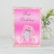 Cute Pink Floppy Ears Bunny First Birthday Invitation